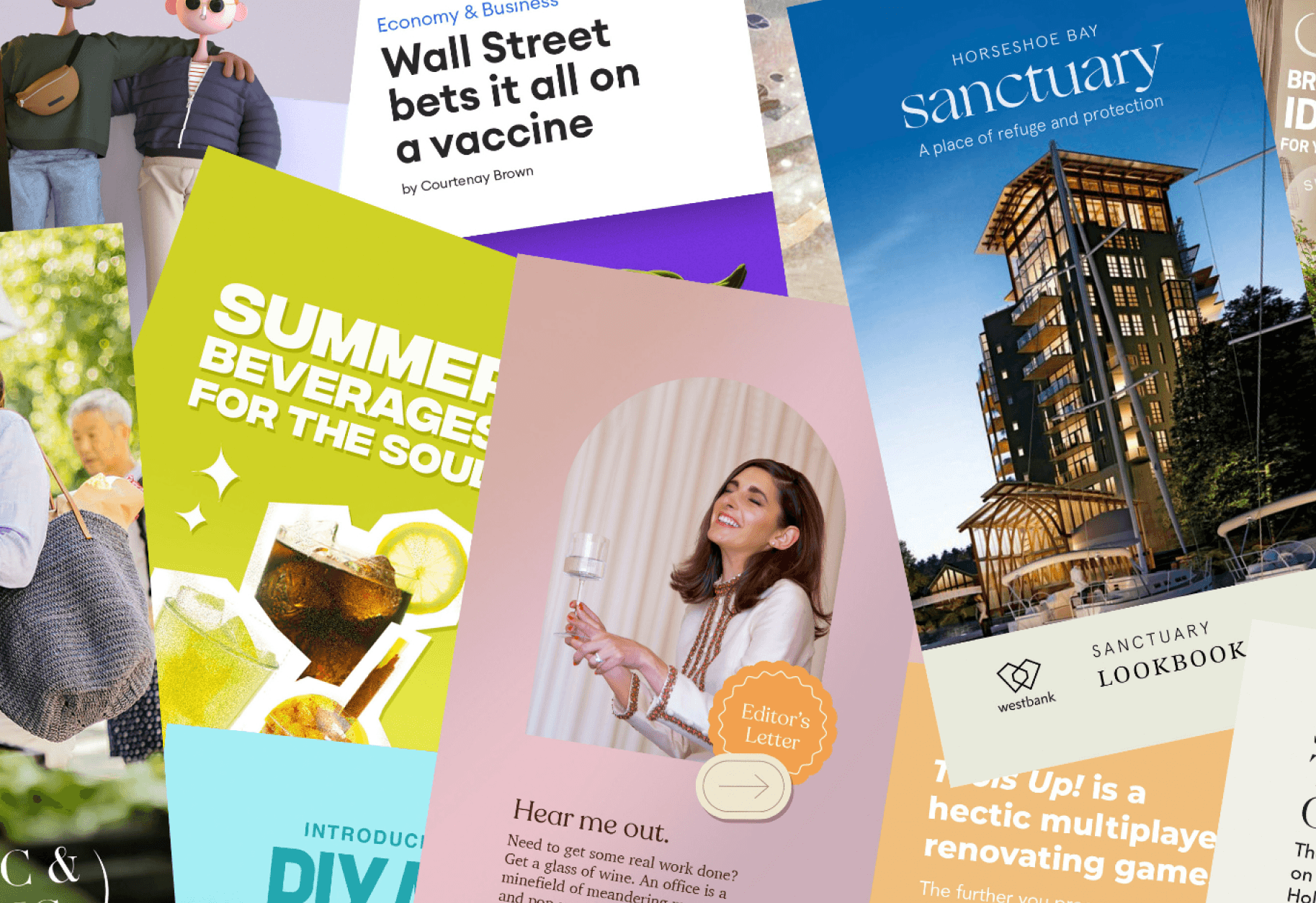 I created folios for lookbooks, menus, real estate packages, ads, travel guides, election materials, influencer decks, portfolios, magazines, newsletters, transit publications, education pieces, corporate docs, poetry, e-commerce layouts, manuals, stories, culture pieces, resumés, and startup content.