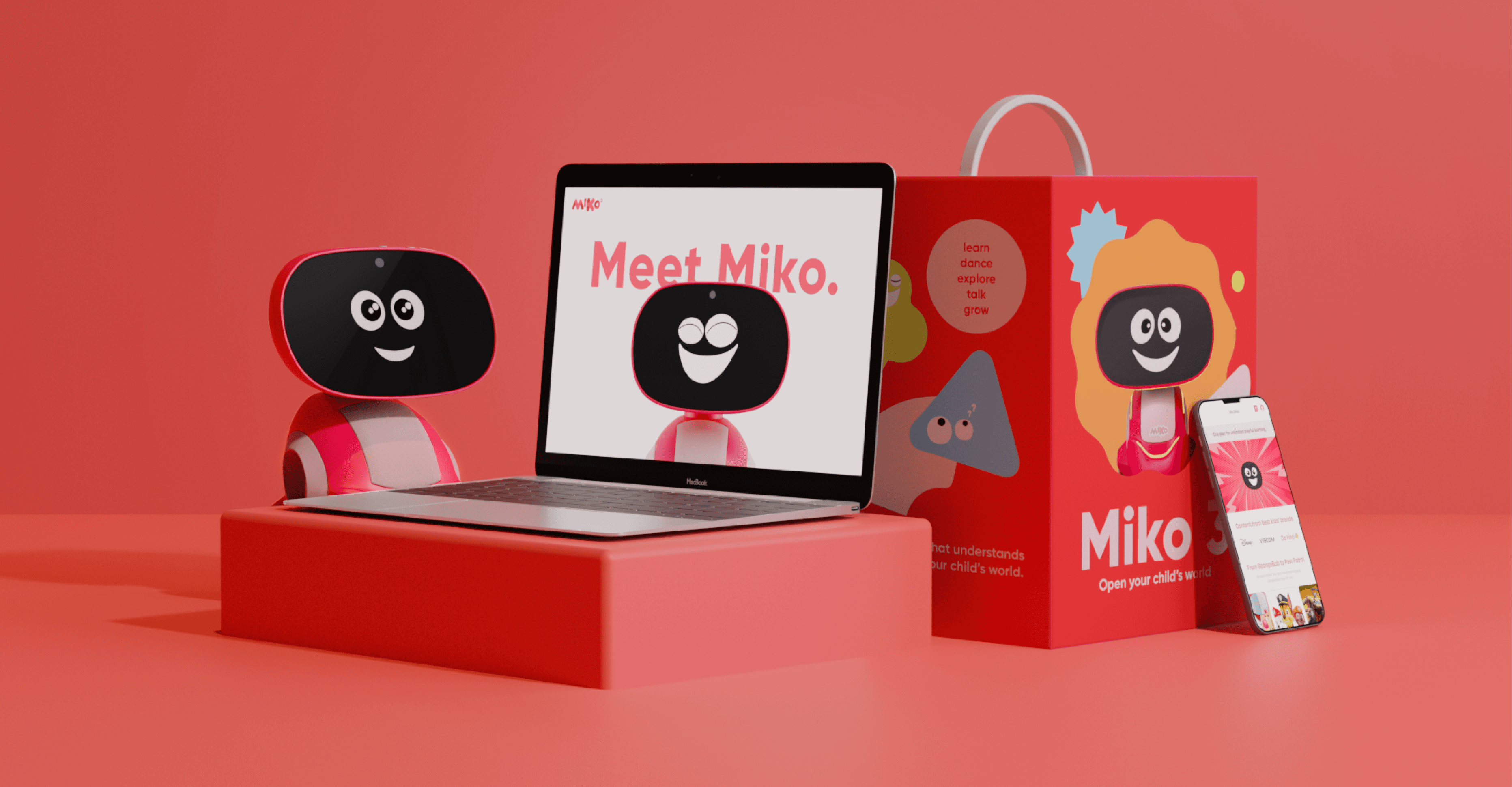 Miko 3 is a smart robot for kids. I worked with the team at Card79 to help bring to life a brand language that uses bold shapes and a sense of humour and wit to make learning not feel like learning. We worked on everything from fun, colourful packaging to more information-heavy UI/UX screens.